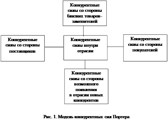 · Конкурентные силы внутри отрасли . Степень конкурентной борьбы внутри отрасли будет зависеть от типа рынка, в условиях которого функционируют предприятия, и от того на каких (одних и тех же или разных) сегментах они предлагают свои товары. С целью снижения конкуренции внутри отрасли предприятия используют дифференциацию товара, а также часто следуют стратегии рыночной ниши. В этом случае каждая фирма предлагает свой товар только узкому сегменту рынку, либо фирма предлагает разные модификации товара разным сегментам рынка. И то, и другое затрудняет вход на рынок новых предприятий. Также распространено создание различного рода объединений предприятий на основе горизонтальной концентрации, заключение различного рода картельных соглашений об уровне цен, о разделе сфер влияния, использование различных форм неявного сговора и т.п.;