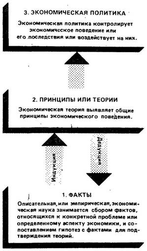 Приступая к изучению любой проблемы или сектора экономики, экономисты должны применять индуктивный метод, с помощью которого они собирают, систематизируют и обобщают факты. Напротив, дедуктивный метод подразумевает выдвижение гипотез, которые затем сопоставляются с фактами. Полученные на основе любого из этих методов обобщения полезны не только для объяснения экономического поведения, но также и для выработки экономической политики.