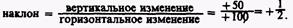 Линии можно характеризовать по крутизне их наклона. Наклон прямой линии между двумя точками определяется как отношение вертикального ее изменения (повышения или снижения) к горизонтальному ее изменению (разность абсцисс), обусловленное передвижением между точками. Например, перемещаясь от точки В