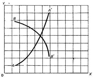 7. Является ли на помещенном ниже графике наклон кривой АА' положительным или отрицательным? Увеличивается ли или уменьшается наклон по мере продвижения отA к A ' Ответьте на такие же два вопроса, относящиеся к кривой BB '.