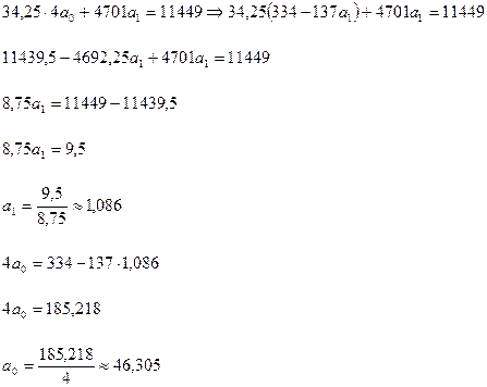Составим систему уравнений, подставив рассчитанные выше значения: