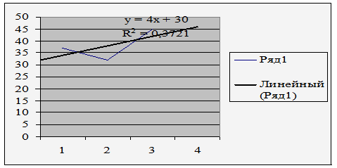 Начальные значения вычислим путем построения линейного тренда по данным за года 2, 3, 4. Построение осуществим с помощью «Мастер диаграмм», с последующим построением линейного тренда (график 1).