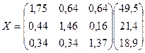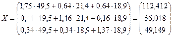 На основе данных межотраслевого баланса составить прогноз объема валовой продукции по каждой отрасли при условии, что объем конечного спроса по первой отрасли в прогнозном периоде увеличится на 10%, по второй – на 7%, по третьей – на 5%. Межотраслевой баланс за отчетный период