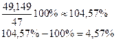 При увеличении объема конечного спроса по третьей отрасли в прогнозном периоде на 5%, прогноз увеличения объема валовой продукции будет следующим – 4, 57%: