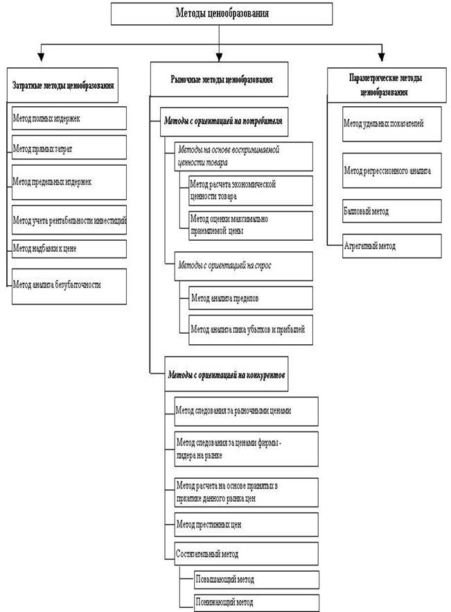 Методология ценообразования – это совокупность общих правил, принципов и методов, направленных на разработку концепций ценообразования, определение и обоснование целей, формирование системы цен и управление ценообразованием.