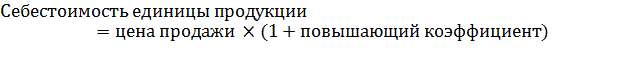 При этом методе расчет цены продажи связан с умножением цены производства, цены закупки и хранения сырья и материалов на определенный коэффициент добавочной стоимости по формуле: