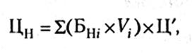 где n — количество оцениваемых параметров; Бнi — балловая оценка i-го параметра нового изделия; Vi — коэффициент весомости i-го параметра нового изделия; Ц' — средняя оценка одного балла изделия-эталона (стоимостной показатель).