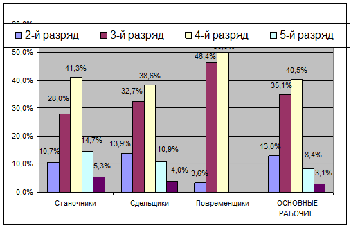 – увеличился профессионально-квалифицированный состав рабочих цеха: средний разряд работ, в целом соответствует разряду рабочих (отставание по токарям-расточникам и строгальщикам);