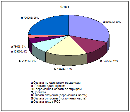 –отмечается рациональное использование средств на оплату труда, при чем отмечается прогрессивные изменения в их структуре (растет уд. вес переменной части и соответственно снижается часть постоянная), что в рыночных условиях является стимулирующим фактором и свидетельствует о более гибкой организации работы и управлении цехом;