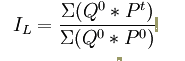 Индекс Ласпейреса определяется путём взвешивания цен двух временных периодов по объёмам потребления базисного периода и отражает изменение стоимости потребительской корзины базисного периода, произошедшее за текущий период. Индекс рассчитывается как отношение потребительских расходов, обусловленных приобретением того же набора потребительских благ по текущим ценам (ΣQ0 * Pt), к расходам на приобретение идентичного по структуре набора по ценам базисного периода (ΣQ0 * P0)