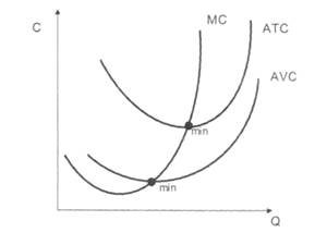 Рис.3. Кривые предельных и средних затрат фирмы в краткосрочном периоде