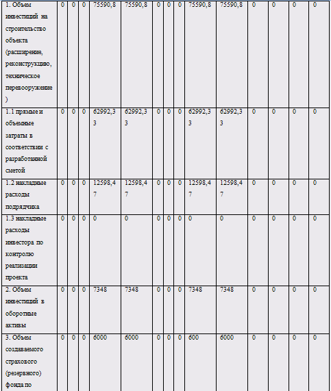На первом этапе этих расчетов исходя из сметной стоимости работ и этапов их осуществления составляется график потоков инвестиций, связанных со строительством (расширением, реконструкцией, техническим перевооружением) и вводом в эксплуатацию. В этом графике отражается также необходимый уровень инвестиций в оборотные активы и в создание необходимых резервных фондов. В составе инвестиций, связанных с вводом в действие основных фондов, учитываются не только прямые затраты по смете, но и накладные расходы подрядчика и инвестора. На первый год график потока инвестиций разрабатывается помесячно, а на второй год – поквартально. необходимые расчеты проводятся в таблице 9.