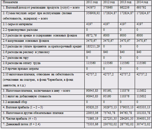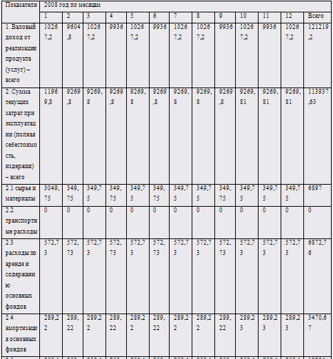 На втором этапе расчетов обосновываем план доходов и расходов, связанных с эксплуатацией реализуемого проекта. Здесь отражаем валовой доход от реализации услуги, общий объем и состав основных текущих затрат.