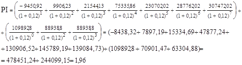 За результатом рентабельности инвестиций делаем вывод, что проект является прибыльным: на 1 единицу вложений получим доходность в размере 1,96 единиц.