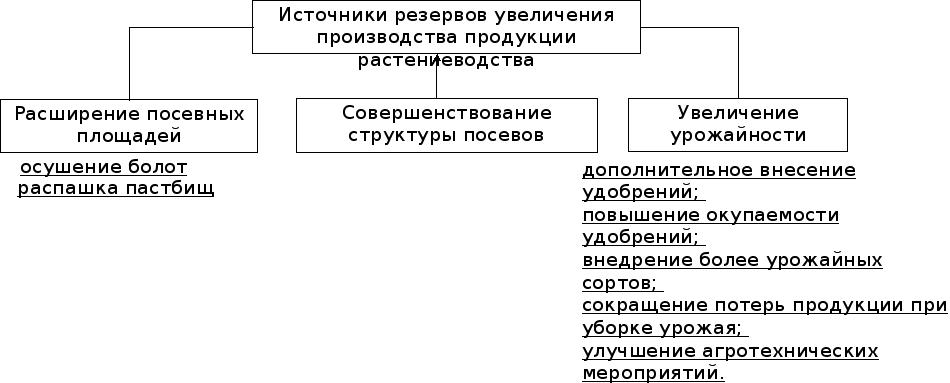 | Рис.1. Основные направления поиска резервов увеличения производства продукции растениеводства | ||||||||||||