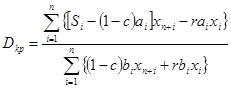 Пусть D — случайная величина, равная совокупному спросу на реализуемый рассматриваемой системой товар. Предположим, что спрос в i-ом сегменте можно, взяв совокупный спрос в качестве ведущего фактора, представить в виде: