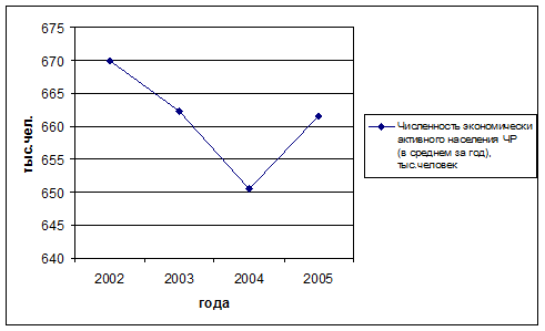 | 2. Численность экономически активного населения ЧР (в среднем за год), тыс. человек | 670,0 | 662,3 | 650,5 | 661,6 |