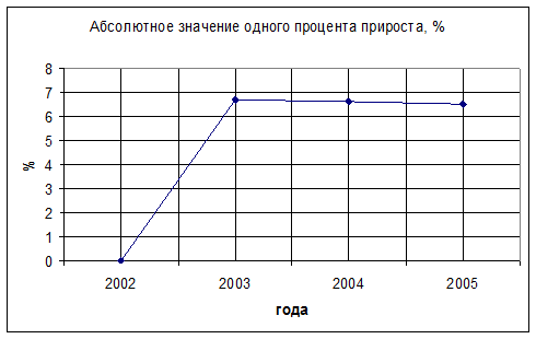 Рис. 3.4 Абсолютное значение одного процента прироста, %
