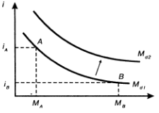 Кривая спроса на деньги имеет отрицательный угол наклона, так как по мере уменьшения ставки процента спрос на деньги возрастает (при определенном уровне номинального национального дохода). При снижении ставки процента происходит скольжение вдоль кривой спроса на деньги Мй1 из точки А в точку В. С увеличением уровня номинального национального дохода происходит сдвиг кривой спроса на деньги из положения Mdl в положение Md2 [4, c. 173].