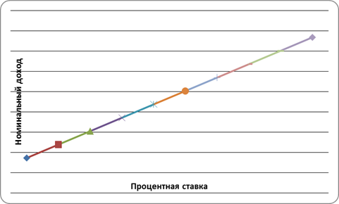 Различают реальную и номинальную ставки процента. Реальная ставка процента (г) представляет собой доход от активов, которые можно хранить в качестве альтернативы деньгам. Реальная ставка процента — это "цена", которую приходится платить за обладание частью богатства в форме не приносящих дохода денег, а не в виде альтернативных активов, приносящих владельцу процент.