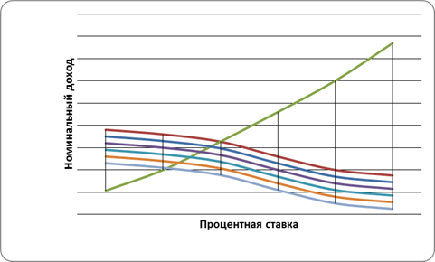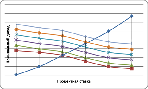 Трансакционный мотив и мотив предосторожности формируют прямую функциональную зависимость между увеличением номи-нального дохода и увеличением спроса на деньги. Спекулятивный мотив вызывает увеличение спроса на деньги при снижении ставки процента, и наоборот.