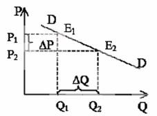 Рис. 1.2. Неэластичный спрос (∆Q>∆P);