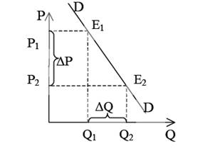 Рис. 1. Эластичный спрос (∆Q>∆P);