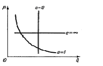 Линии спроса с нулевой, единичной и бесконечной эластичностью показаны на рис.3.2.