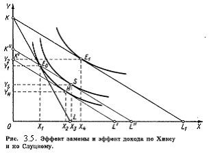 Если Е* ij > 0, то такие товары называются нетто-субститутами(или взаимозаменяемыми по Хиксу) в отличие от брутто-заменителей, определяемых по критерию Е ij > 0. Если Е* ij < 0, то такие товары называются нетто-дополняющимив отличие от брутто-дополняющих, определяемых по критерию Е ij < 0. Перекрестный эффект замены симметричен, Е ij = Е* ij . И если i -тый товар определен как нетто-заменитель j -того, то и j -тый товар является нетто-заменителем i -того.