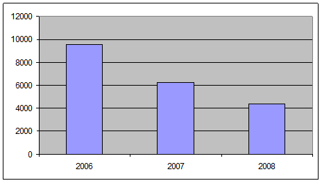 Отчисления в фонд развития потребительской кооперации за 2006 –2008 гг. имеют следующую тенденцию (рис. 1).