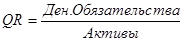 Коэффициент быстрой ликвидности (коэф. лакмусовой бумажки, Quick Ratio, Acid Test Ratio, QR) - финансовый коэффициент, равный отношению высоколиквидных текущих активов и текущих обязательств компании. Рассчитывается по данным баланса фирмы как частное от деления суммы денежных средств, краткосрочных инвестиций и дебеторской задолженности на текущие обязательства. Характеризует способность компании отвечать по своим текущим обязательствам с использованием наиболее ликвидных (обращаемых в деньги) активов.