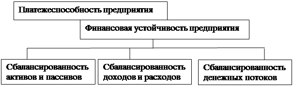 Если текущая платежеспособность – это внешнее проявление финансового состояния предприятия, то финансовая устойчивость – внутренняя его сторона, обеспечивающая стабильную платежеспособность в длительной перспективе, в основе которой лежит сбалансированность активов и пассивов, доходов и расходов, положительных и отрицательных денежных потоков (рис.1.1).