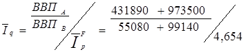 Разделив индекс стоимости ВВП на индекс цен Фишера, получим искомый результат, то есть соотношение физических объемов ВВП двух стран A и B: