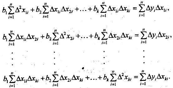 Термин «коэффициент условно-чистой регресии» означает, что каждая из величин bj измеряет среднее по совокупности отклонение результативного признака от его средней величины при отклонении данного фактора хj от своей средней величины на единицу его измерения и при условии, что все прочие факторы, входящие в уравнение регрессии, закреплены на средних значениях, не изменяются, не варьируют.