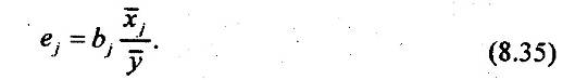 Итак, мы получили, что ?-коэффициент фактора хj относится к коэффициенту эластичности этого фактора, как коэффициент вариации фактора к коэффициенту вариации результативного признака. Поскольку, как видно по последней строке табл. 8.7, коэффициенты вариации всех факторов меньше коэффициента вариации результативного признака; все ?-коэффициенты меньше коэффициентов эластичности.