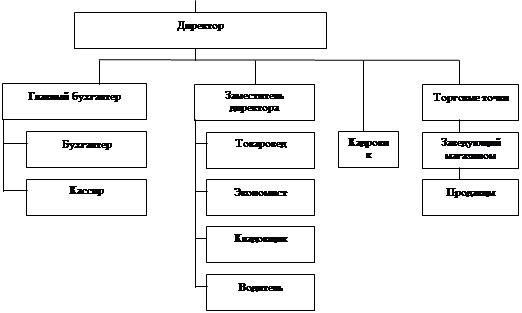 На директора возлагается вся работа по управления. Он организует работу и эффективное взаимодействие всех структурных подразделений, направляет их деятельность на развитие и совершенствование процессов торговли с учетом социальных и рыночных приоритетов, повышение эффективности работы предприятия, рост объемов продаж и увеличение прибыли.
