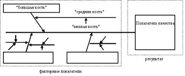 В контроле качества с успехом применяются контрольные карты. Контрольная карта состоит из центральной линии, двух контрольных пределов (над и под центральной линией) и значений характеристики (показателя качества), нанесенных на карту для представления состояния процесса. Контрольные карты служат для выявления определенной причины (не случайной). Схема Исикава (диаграмма причин и результатов) состоит из показателя качества, характеризующего результат и факторных показателей.