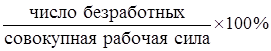 Коэффициент (уровень) безработицы используется для измерения масштабов безработицы и рассчитывается как отношение числа безработных к совокупной рабочей силе: