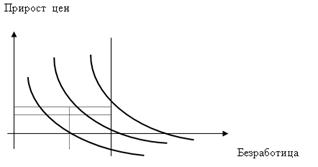 Новую интерпретацию ситуации на рынке труда дали монетаристы, которые разработали теориюсдвигов кривой Филлипса, или акселерационную модель (рис.2).
