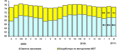 На 1 апреля 2011 года численность безработных граждан – 27,5 тыс. человек, уровень регистрируемой безработицы (отношение численности зарегистрированных безработных граждан к численности экономически активного населения) – 1,1% (на 1 апреля 2010 г. – 1,2 %).