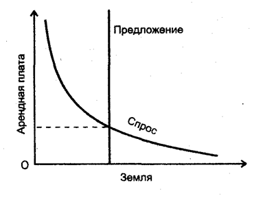 Если величина арендной платы выше уровня равновесия, то количество арендаторов, которые в состоянии заплатить ее, уменьшается. Спрос на землю падает, что вызывает уменьшение арендной платы до равновесного уровня. Если арендная плата отклоняется от точки равновесия вниз, то число желающих арендовать землю превышает ее предложение, обостряется конкуренция между арендаторами за участки. Это вызывает увеличение арендной платы до ее равновесного состояния.