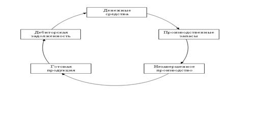 Авансирование означает, что затраченные в начале процесса производства денежные ресурсы возвращаются предприятию после завершения кругооборота. Именно из выручки от реализации продукции происходит возмещение авансированных денежных сумм и все возвращается к исходной позиции. Кругооборот оборотных активов представлен на рисунке 1.1.