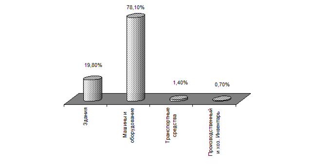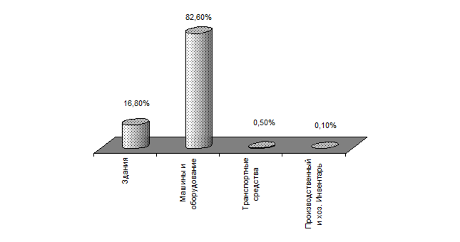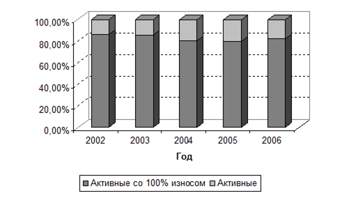 Значительная доля основных фондов используется на производстве более 15 лет и изменение в возрастной структуре происходит в сторону старения основной части оборудования. Об этом свидетельствует полный износ 83% активной части основных фондов, из-за этого амортизационные отчисления в экономике производства не имеет большого значения, так как главным источником отчислений остаются здания. Поэтому, одним из главных путей улучшения показателей использования основных фондов является ликвидация изношенного оборудования.