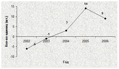 Положительной тенденцией развития производства является значительный прирост оборудования на начало 2004-ого и 2005-ого годов, в связи с закупкой нового современного оборудования для выполнения госзаказа по военной промышленности.
