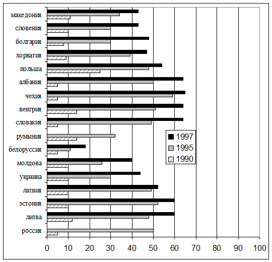 Предметом исследования настоящей работы являются процессы реформирования экономики в европейских странах бывшего социалистического лагеря.