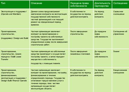 Таблица 2. Виды государственно-частных партнёрств[7] .