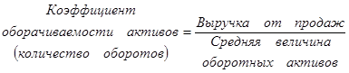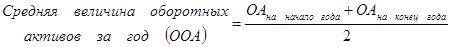 Данный показатель характеризует скорость оборота оборотных средств экономического субъекта. При этом средняя величина активов рассчитывается как среднеарифметическая величина активов на начало и конец периода:
