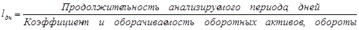 Другой показатель оборачиваемости оборотных активов - продолжительность одного оборота, в днях (lдн ) - рассчитывается по формуле