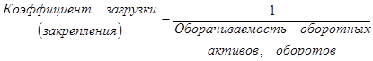 Для оценки динамики закрепления в 1 тенге выручки от продажи средней величины оборотных активов предлагается рассчитывать как минимум за два периода коэффициент загрузки (закрепления) оборотных активов:
