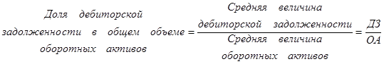 Рекомендуется рассчитать и другой показатель движения дебиторской задолженности - долю дебиторской задолженности (ДЗ) в общей величине оборотных активов организации (на начало и конец периода):